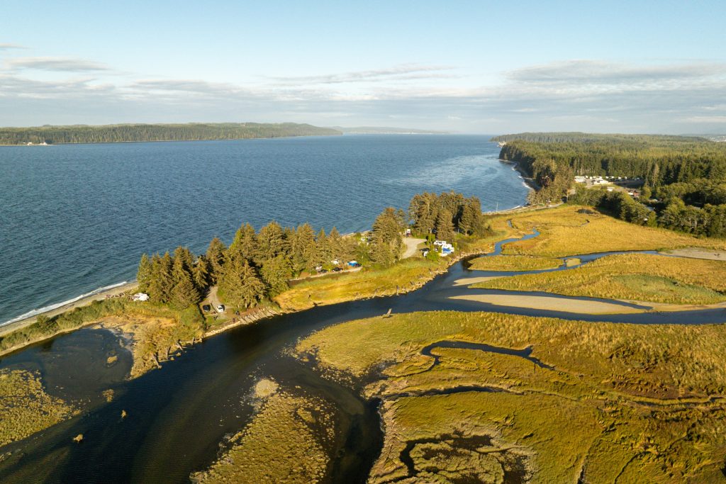 Day three invites you to meander along the picturesque, winding road from Port McNeill to Port Alice. Take in the changing scenery, from marsh to lush forest to waterways— and stop to stretch your legs at Marble River Provincial Park before arriving in Port Alice for a coffee at Foggy Mountain Coffee Co.